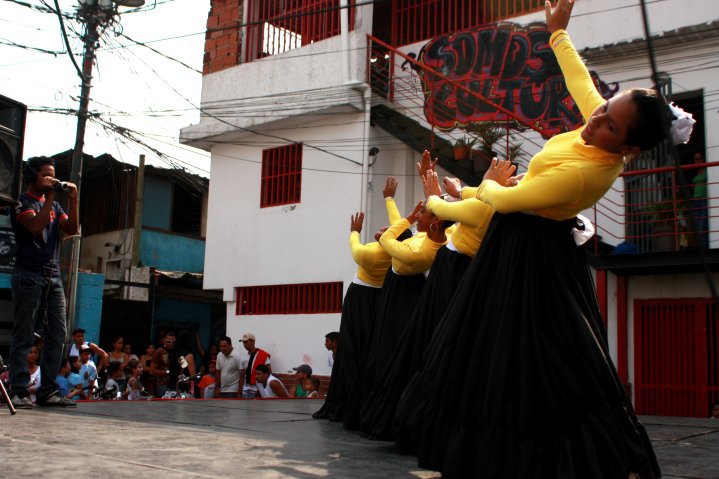 La comunidad del sector 3 de La Bombilla, en Petare, disfrutó este sábado 27 de la Pachanga Cultural, actividad organizada por el Ministerio del Poder Popular para la Cultura. Desde allí se realizaron los programas Con el Pie Izquierdo y Contraataque, que también transmitieron en vivo, vía Skype, parte de los eventos culturales, incluyendo las interpretaciones de la Coral Corazón Venezuela, el grupo de hip hop Los Espartanos y Joropo 6. También se presentaron los grupos de danza Fundación Estampa Venezolana, Danza Tricolor, Grupo Integral Magia de la Danza y el Circo del Sur, que realizaron presentaciones musicales, magia y acrobacia. Vea el fotorreportaje.