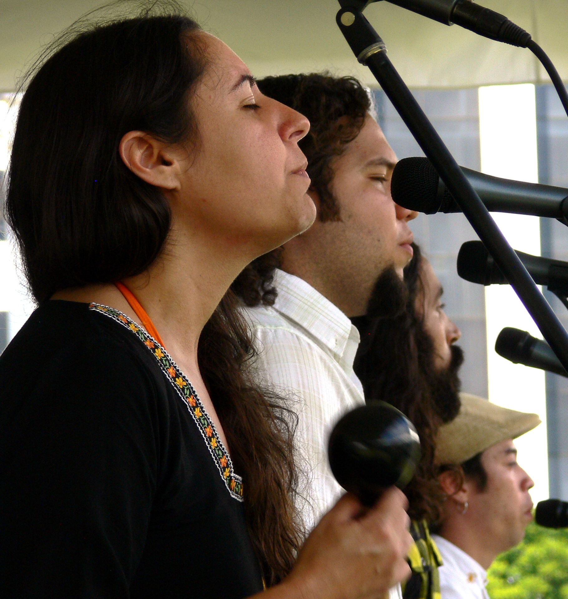 Pasados unos minutos de las once de la mañana, se realizó la presentación del grupo por parte del personal de la Estancia. Amaranta Pérez, cantora de la agrupación, tomó la palabra para decir que sus canciones estarían acompañadas de Ladeslay Bermúdez, poetisa, y de Ely Briceño, poeta. Luis Miguel Badaraco, Handel Mendoza, José Alejandro Paredes, Sandino Primera, José Alejandro Delgado, Mauricio Figuerai y Amaranta Pérez dejaron escuchar sus voces para que conocieran las canciones que les han surgido cuando miran las realidades del mundo latinoamericano.
