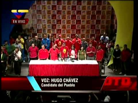 El jefe del Comando de Campaña Carabobo, Jorge Rodríguez, encabezó una rueda de prensa desde el conocido teatro capitalino, en el centro de Caracas, aproximadamente a las 8:20 pm a la espera de los resultados. “El pueblo venezolano inscribió hoy una de las páginas más gloriosas de la historia política de Venezuela”, dijo en medio de aplausos y gritos de consignas de cientos de miembros del comando que apoya al candidato Hugo Chávez.