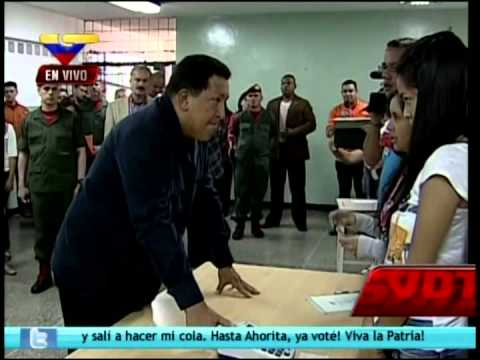 Chávez, quien es candidato por el Partido Socialista Unido de Venezuela (Psuv) para un nuevo mandato de seis años, arribó al lugar manejando una camioneta. Le acompañó en el proceso parte de los miembros de su Gobierno, entre ellos el vicepresidente, Elías Jaua; el alcalde de Caracas y jefe del Comando de campaña Carabobo, Jorge Rodríguez; la jefa de Gobierno, Jacqueline Faría; sus hijas y nietos.