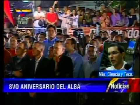 El ministro agregó que “el Presidente saluda el acto que se realiza por los ocho años de la creación de la ALBA; los 200 años de nuestro Manifiesto de Cartagena; los 13 años de la aprobación de la Constitución y los 18 años del primer encuentro entre el comandante Chávez y el comandante Fidel Castro”.