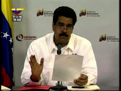 Anunció esta tarde la expulsión del agregado aéreo de la embajada de EEUU en Venezuela, David del Monáco, acusado de haber contactado a militares activos venezolanos para incitarlos a la rebelión. Maduro también aseguró no tener duda de que el cáncer que padece el Jefe de Estado fue “inoculado” por sus enemigos y que él fue “atacado con esta enfermedad”. Asegura que llegará el momento de determinar de forma científica si el cáncer fue inoculado al Presidente Chávez, como sucedió con el líder palestino, Yasser Arafat.