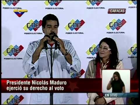 “Nunca pensamos estar hoy aquí. Mi vida la hice, en los últimos 21 años, alrededor del sueño de un hombre, de un gigante (Hugo Chávez). Hoy cuando amaneció, amanecí con él, con su pensamiento, su canto, su obra”, resaltó. Manifestó que en la jornada electoral de este domingo se está rompiendo récord de participación ciudadana en todo el país.