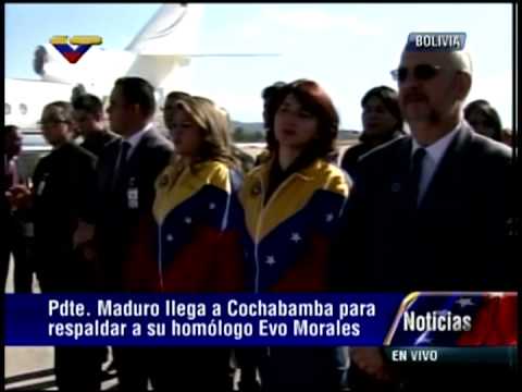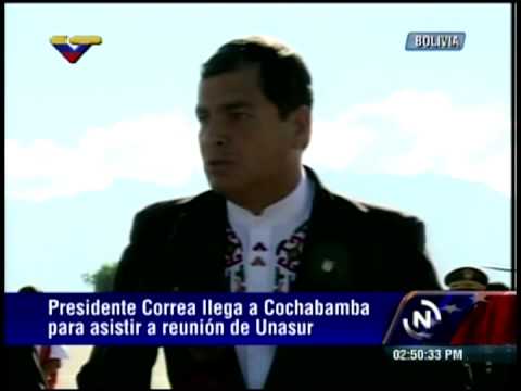 El presidente de Venezuela, Nicolás Maduro; el presidente de Ecuador, Rafael Correa y el presidente de Uruguay, José Pepe Mujica, arribaron este jueves a la ciudad boliviana de Cochabamba para participar en la cumbre de la Unión de Naciones Suramericanas (Unasur) sobre el atentado que sufrió el presidente de Bolivia, Evo Morales, cuando un grupo de países europeos le prohibió el paso por su espacio aéreo al avión presidencial boliviano. Señaló Correa: “No entendemos por qué se ha actuado así contra la querida Bolivia. ¡Si Bolivia no ha saqueado a nadie! ¡Bolivia no ha invadido a nadie! ¡Bolivia no ha espiado a nadie! No entendemos esa doble moral. En lugar de estar defendiendo a sus pueblos del mayor escándalo de espionaje de la historia de la humanidad, tratando de dejar de esa manera a un Jefe de Estado indígena, representante de los pueblos ancestrales”.