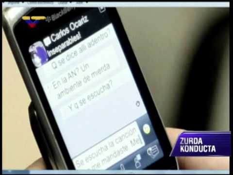 Julio Borges y María Corina Machado, diputados de la derecha en la Asamblea Nacional (AN), irrespetaron este martes a las instituciones del Estado al enviar mensajes de texto denigrantes contra los Poderes Constituidos durante la presentación del proyecto de Ley Habilitante por parte del presidente de la República, Nicolás Maduro. En el programa Zurda Konducta, transmitido por Venezolana de Televisión, fueron presentadas las fotografías que dejaban ver los mensajes escritos por los dirigentes de oposición. “¿Qué se dice allá adentro?”, le preguntó Carlos Ocariz (militante de Primer Justicia) a Borges. “En la Asamblea Nacional, un ambiente de mierda”, respondió el parlamentario. Borges también recibió un mensajes de una persona identificada como Daniela, quien le preguntó “¿Cómo va eso?”. El antichavista respondió “llegando el mojón”, refiriéndose al Jefe de Estado.