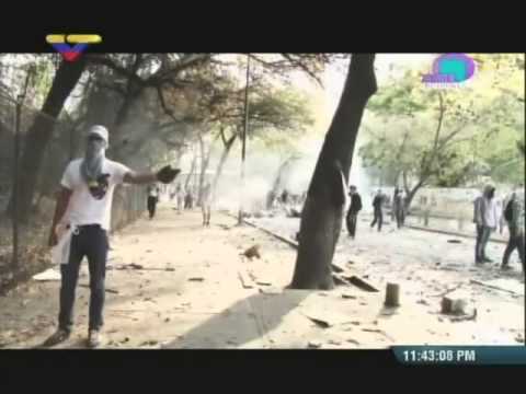 Los estudiantes lanzaron piedras hiriendo a numerosos efectivos (masculinos y femeninos) de la Policía Nacional Bolivariana; además, les robaron los escudos.