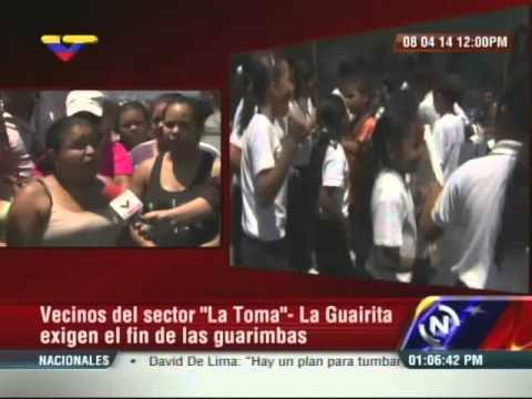 Una protesta pacífica fue realizada este martes por vecinos del sector La Toma, en las inmediaciones del cementerio de La Guairita, en el sureste de Caracas, pidiendo fin a las guarimbas, protestas y barricadas que han afectado la educación y asistencia al liceo de más de 1.200 niños de la zona, y también ha afectado la convivencia y la vida cotidiana de los habitantes del sector. Con pancartas haciendo exhortos a los alcaldes de Baruta, Gerardo Blyde; y de El Hatillo, David Smolansky, los vecinos manifestaron desde tempranas horas de este martes.
