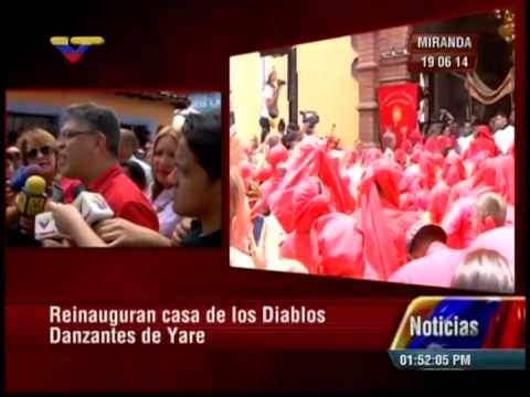 La Casa de los Diablos Danzantes de Yare, ubicada en el estado Miranda, fue reinaugurada este jueves por el Gobierno Bolivariano, a través del presidente de Corpomiranda, Elías Jaua, y el Ministerio del Poder Popular para la Cultura, Fidel Barbarito. Al respecto, Elías Jaua, en su rol como presidente de CorpoMiranda (Corporación de Desarrollo de la Cuenca del Río Tuy Francisco de Miranda), subrayó que la remodernización de la sede es parte del apoyo que brinda la Revolución Bolivariana al patrimonio cultural. Recordó que, sumado a esto, han patrocinado los viajes de los danzantes para dar a conocer su cultura en otras regiones del mundo.