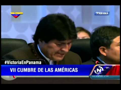 Además, el mandatario boliviano denunció: “No es posible que rechacen (en) la cumbre a nuestros movimiento sociales. Pero además de eso, 33 países apoyan a Venezuela y uno o dos países rechazan (derogar) el decreto que amenaza no solamente a Venezuela, sino a toda América Latina y el Caribe. Hermanas y hermanos: si Estados Unidos es una de las potencias del mundo, yo pido al Presidente Obama que lidere a América para que sea un continente modelo de paz y con justicia social. Presidente Obama, si siente que es líder de una potencia del mundo, le pido que encabece a salvar la Madre Tierra para salvar la vida de la Humanidad”.