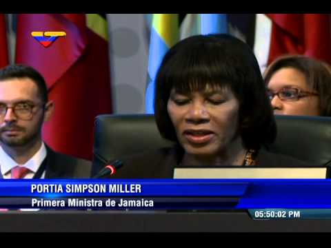 Portia Simpson-Miller, primera ministra de la nación jamaiquina, si bien no mencionó directamente el tema del decreto, agradeció “la colaboración de nuestros socios a medida que buscamos atender nuestros desafíos económicos y sociales. En ese sentido, los acuerdos ofrecidos por el gobierno de Venezuela a través de Petrocaribe es uno de los mejores ejemplos de cooperación sur-sur y es congruente con el tema de nuestra reunión cumbre: la prosperidad con equidad. Quisiéramos aprovechar esta oportunidad para, una vez más, expresar nuestro agradecimiento al presidente Maduro por el continuo apoyo que ha dado Venezuela a nuestro país”.