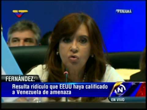 “Es una pena que esta cumbre se vea ensombrecida por esa decisión, y pedimos, junto a los demás países hermanos, que este decreto sea dejado de lado, pero no voy a apelar a la soberanía ni a discursos lacrimógenas. Simplemente apelaré al sentido común. Decía el general Perón, que se vuelve de cualquier lugar menos del ridículo, y la verdad es que resulta absolutamente ridículo considerarnos a cualquiera de nosotros una amenaza”.