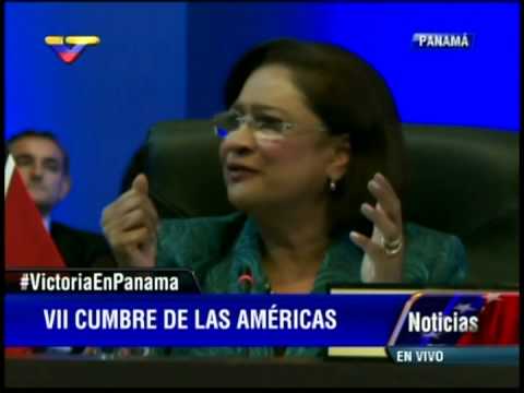 “Estábamos contentos porque voy a participar como presidenta en la última reunión, en un hecho histórico”, dijo respecto al hecho de que la Cumbre de las Américas por primera vez recibiese a Cuba, y haya posibilidades reales de que se acabe el bloqueo a ese país por parte de Estados Unidos. Obama ya se había marchado de la plenaria durante su intervención.