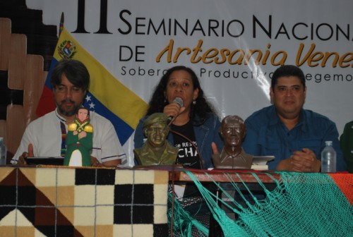 Con palabras en homenaje a Eduardo Galeano, escritor uruguayo fallecido el pasado 13 de abril, este jueves se dio inicio al II Seminario Nacional de Artesanía Venezolana: Soberanía Productiva y Economía Cultural, en el Salón Nicolás Pellazo del Centro de Convenciones Henrique Tirado Reyes, en la ciudad de San Felipe, estado Yaracuy. El acto de instalación estuvo a cargo de la viceministra para el Fomento de la Economía Cultural y presidenta de la Fundación Red de Arte, Aracelis García; quien estuvo acompañada por el Rector de la Universidad Nacional de las Artes (UNEARTE), Nestor Viloria; la Autoridad Única de Cultura del estado Yaracuy, José Naranjo; las artesanas yaracuyanas Wendy Arias, del Concejo Presidencial de Cultura, y Yolanda Estanga, maestra artesana del municipio Veroes; entre otras autoridades nacionales, regionales y locales vinculadas al quehacer cultural, que desarrollan políticas de apoyo al sector artesanal.