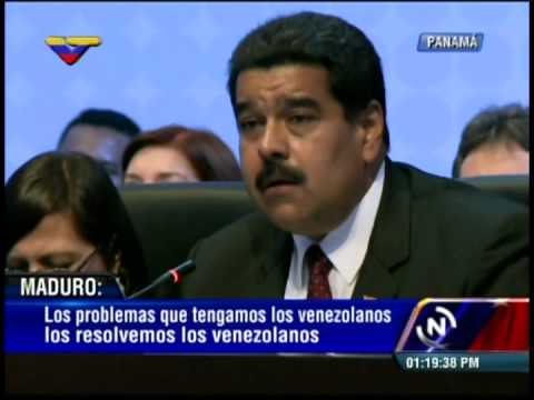 El presidente de la República Bolivariana de Venezuela, Nicolás Maduro, exigió este sábado al Gobierno de Estados Unidos cesar su política de injerencia y, por consiguiente, respetar los principios de justicia, de derecho internacional y de libre determinación de los pueblos, establecidos en la Carta de las Naciones Unidas. Durante su intervención en la Cumbre de las Américas, celebrada en Panamá y en la que participan 35 jefes de Estados y de Gobierno del hemisferio, el mandatario venezolano demandó a su par estadounidense, Barack Obama, seguir cuatro líneas dirigidas a restablecer las relaciones entre ambas naciones.