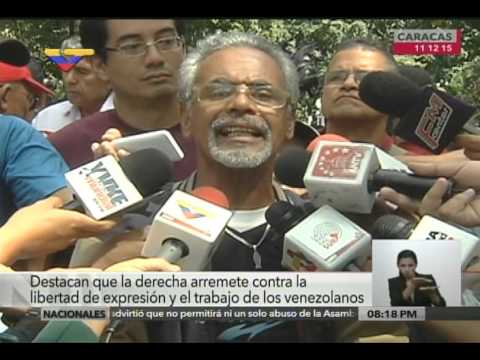 Periodistas y comunicadores pertenecientes a medios públicos, alternativos, comunitarios e independientes del territorio nacional, manifestaron este vienes su rechazo hacia las agresiones realizadas por la derecha venezolana en contra de los trabajadores del Sistema Bolivariano de Comunicación e Información (Sibci). Mediante un comunicado, que fue leído desde los espacios de la Plaza Bolívar, en Caracas, representantes de este gremio expresaron su solidaridad y respaldo con los trabajadores del canal de la Asamblea Nacional (ANTV) y AN Radio, tras las declaraciones emitidas por el diputado opositor, Henry Ramos Allup, que compromete la estabilidad laboral de estos profesionales.
