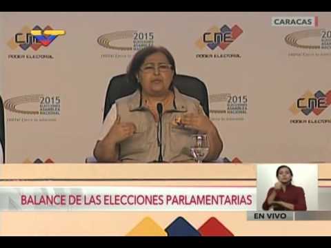 En rueda de prensa desde la sede del Consejo Nacional Electoral en Caracas, la presidenta del organismo, Tibisay Lucena anunció los resultados irreversibles de las elecciones parlamentarios. Informó que el Partido Socialista Unido de Venezuela (PSUV) obtuvo 24 representantes nominales y 22 lista, para un total de 46 diputados. La Mesa de la Unidad Democrática (MUD), que representa a los partidos de derecha, obtuvo 72 diputados nominales y 27 lista, para un total de 99. Hasta los momentos, el 68 por ciento de los cargos en la Asamblea Nacional son de la oposición.