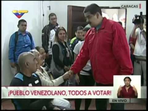 “Si algo podemos decir a esta hora (2:23 de la tarde del domingo) es que llegó el día, llegó la hora. Que nadie se quede sin votar, que nadie se quede en su casa. En familia, en cambote, abrazados, a pie, en bicicleta, en moto, en burro, como sea, a votar, a votar y a votar”, llamó el presidente Maduro, quien estuvo acompañado por la primera combatiente, Cilia Flores; el vicepresidente de la República, Jorge Arreaza, y dirigentes revolucionarios.