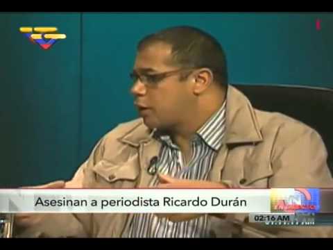 En horas de la madrugada de este miércoles, el ministro de Comunicación e Información, Luis José Marcano, confirmó a través de su cuenta Twitter el asesinato del periodista Ricardo Durán en el sector UD-4 de Caricuao. Según información extraoficial, recibió un disparo al descender de su vehículo. “No le quitaron absolutamente nada: ni la cartera, ni dinero, ni el teléfono celular, ni su arma de reglamento ―tenía su porte de arma―, ni mucho menos le quitaron su auto”, declaró Daniel Aponte, Jefe de Gobierno del Distrito Capital. “Ya pronto se dirá qué ocurrió”.