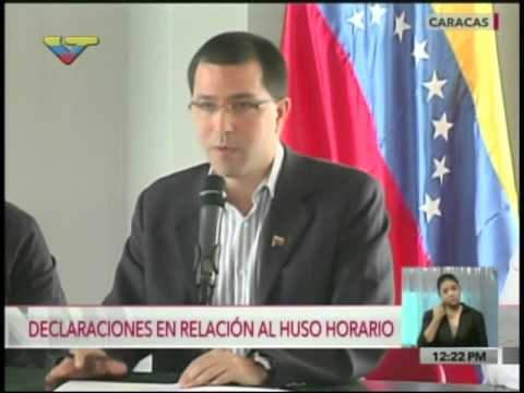 El vicepresidente de Misiones Socialistas y ministro de Ciencia y Tecnología, Jorge Arreaza, dio detalles este viernes al mediodía sobre el cambio de huso horario que se hará en el país a partir de este 1 de mayo con el fin de ahorrar energía eléctrica. “Se volverá al huso horario de 4 horas menos respecto al meridiano de Greenwich”, es decir, -4 UTC. “Esto significa que el 1 de mayo en la madrugada, al despertarse, usted deberá adelantar el reloj media hora”.