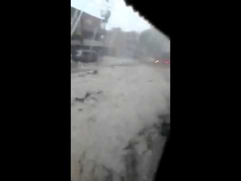 En uno de los videos más sobrecogedores, la fuerte corriente arrastra a una serie de vehículos, y uno de ellos transporta a dos personas quienes logran salvarse milagrosamente, saliendo del vehículo y guindándose a las rejas de una ventana.