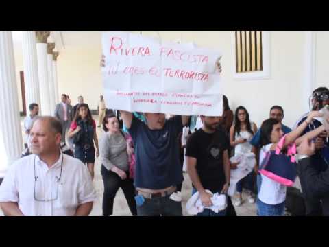 Rivera fue acompañado por el presidente de la Asamblea Nacional, Henry Ramos Allup, y por muchos otros diputados y polìticos de la derecha venezolana. Impartió discursos y charlas en el Palacio Federal Legislativo, sede del Parlamento venezolano, a la sombra de tres inmensos retratos del líder independentista Francisco de Miranda, quien luchó por liberar a la América entera del dominio español.