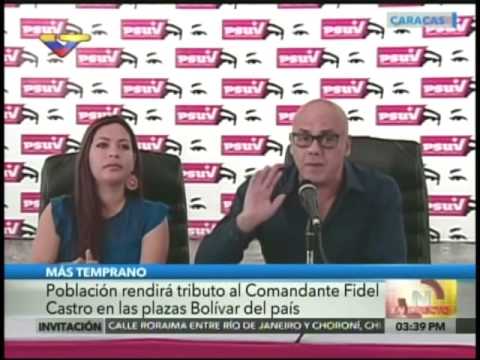 La vida y obra del líder de la Revolución Cubana, Comandante Fidel Castro, será honrada con actividades que se harán en todas las plazas Bolívar de Venezuela, informó este martes el dirigente del Partido Socialista Unidos de Venezuela (Psuv), Jorge Rodríguez. En rueda de prensa en Caracas, tras la reunión ordinaria del partido, mencionó que se rendirá tributo a quien se constituye “en un faro de la dignidad humana, el más grande americano del siglo XX”, por lo que envió su mensaje de condolencia a sus familiares y amigos.