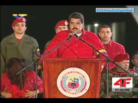 “Fíjense ustedes cómo los enemigos de Venezuela tratan de tergiversar la historia recién vivida, la historia en pleno desarrollo, como dice Walter Martínez― con series, novelas, películas” dijo Maduro desde el Cuartel Páez en el estado Aragua, durante el acto de conmemoración del 25 aniversario de la rebelión cívico militar del 4 de Febrero de 1992. “El enemigo le tiene miedo, terror al ejemplo que significa, significó y significará el Comandante Hugo Chávez para la historia de América Latina y el Caribe, la historia presente y por venir. Por eso tratan de desfigurarla”.