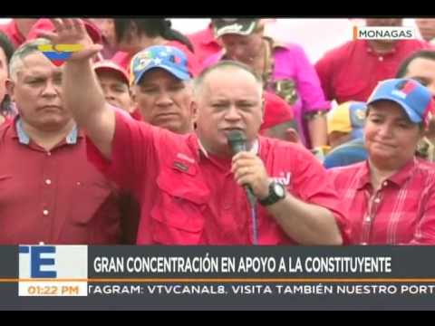 Durante su participación en la movilización en respaldo a la ANC, que se realizó en el estado Monagas, Cabello señaló que el pueblo organizado debe salir a la calle para defender el proceso constituyente que garantiza la paz y la estabilidad frente a las acciones perpetradas por algunos dirigentes de la derecha nacional que promueven la intervención extranjera.