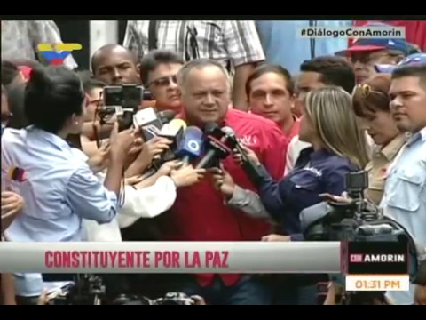 Cabello aseguró que la propuesta de una ANC va cobrando cada vez más fuerza y es “absolutamente inobjetable desde el punto de vista jurídico y constitucional lo que ha hecho el presidente. Es Absolutamente legal y ajustado a nuestra Constitución Nacional. ¿Que ellos tengan objeciones políticas?, es lógico que las tengan”.