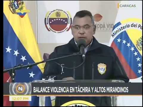 En horas de la mañana el ministro para relaciones interiores Justicia y Paz, Néstor Reverol, realizó un balance sobre los acontecimientos ocurridos este martes en el estado Táchira y Miranda, por la derecha venezolana que ha sumado a sus actos la delincuencia organizada, financiamiento al terrorismo y con la intención de seguir enlutando hogares, en la que se han sumado un total de 11 establecimientos afectados y una persona más fallecida.