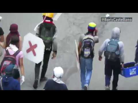 Boris Castellano, periodista de Venezolana de Televisión, también presentó este miércoles un video del alcalde del municipio Chacao, Ramón Muchacho (del partido Primero Justicia), caminando por Altamira sur mientras se dirigía a una concentración en la autopista Francisco Fajardo. A pocos metros de él caminaba un grupo de jóvenes con capuchas y máscaras antigas, quienes trasladaban una gavera llena de botellas.