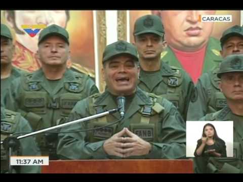 El ministro del Poder Popular para la Defensa, en compañía de comandantes de los cuatro componentes de la Fuerza Armada Nacional Bolivariana (Fanb), el Jefe del Ceofanb (Comando Estratégido Operaciones), el comandante de la Milicia y otros miembros del alto mando militar, leyeron este miércoles un comunicado repudiando el injerencismo del gobierno estadounidense que, a través de dos misivas, ha amenazado con imponer sanciones económicas a Venezuela si activan la Asamblea Nacional Constituyente.