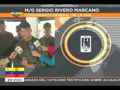 El mayor general Sergio Rivero Marcano, Comandante General de la Guardia Nacional Bolivariana (GNB), informó que un grupo de reacción inmediata (GRI) de la Guardia Nacional Bolivariana fue atacado por un aparato explosivo pirotécnico de gran poder, dejando siete efectivos militares lesionados, dos de ellos con quemaduras de segundo grado y 5 con quemaduras de tercer grado. Fueron trasladados al Hoospital Militar Vicente Salias de Fuerte Tiuna, y están fuera de peligro.