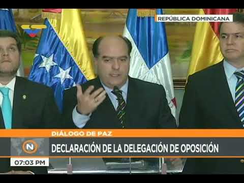 Por su parte, Julio Borges, representante de la oposición, agradeció a los países que hicieron posible la reunión. “Para nosotros es importante el hecho de lograr una reunión que el Gobierno de Venezuela y la oposición que presentaron sus puntos de vistas centrados en los seis puntos de la agenda”. Señaló que en los próximos días “iremos explicando cada una de las propuestas que se han puesto en la mesa”.