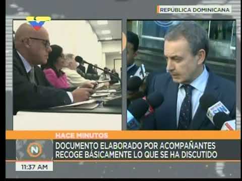 El expresidente del gobierno español y acompañante del diálogo entre el Gobierno y la oposición venezolana, José Luis Rodríguez Zapatero, ratificó este miércoles la importancia de que sectores de oposición firmen el acuerdo final del proceso de diálogo en pro de la estabilidad de Venezuela. A su llegada a la sede de la Cancillería dominicana, donde se desarrolla el diálogo, Zapatero enfatizó que existe una “absoluta e imperiosa necesidad de que haya un acuerdo”.
