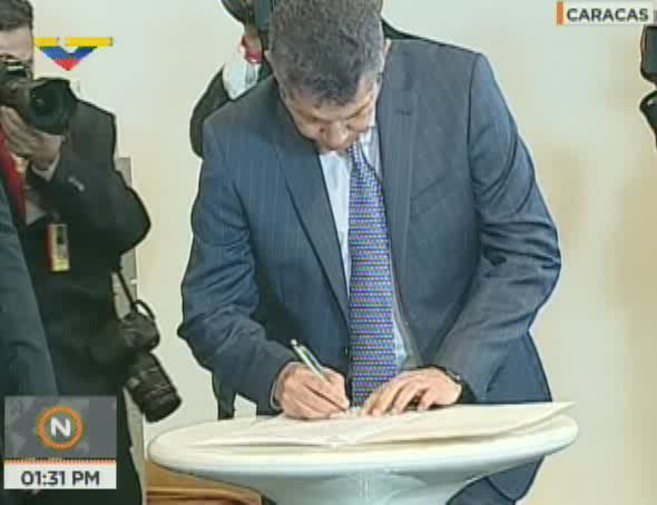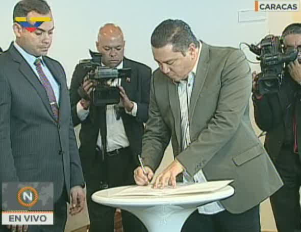 Tras las palabras de la presidenta del CNE, Tibisay Lucena, los candidatos a la presidencia de la República Bolivariana de Venezuela firmaron las garantías electorales ofrecidas por el ente rector electoral.