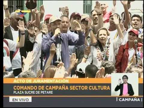 Un llamado unido, de parte de decenas de reconocidos artistas, cultores e intelectuales de todas las áreas para que el pueblo venezolano acuda a votar este 20 de mayo y “no se deje engatuzar por el espejismo de que se van a resolver problemas económicos profundos regalando nuestra soberanía y arrodillando a Venezuela ante el gobierno de Estados Unidos”, fue hecho este miércoles desde la plaza Sucre en la zona colonial de Petare, en el municipio Sucre del estado Miranda, en el acto de juramentación del Comando de Campaña de la Cultura para las elecciones del 20 de mayo.