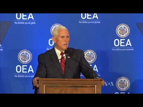 El vicepresidente de Estados Unidos, Mike Pence, acudió este lunes al Consejo Permanente de la Organización de Estados Americanos, desde donde llamó al gobierno de Venezuela a suspender las elecciones presidenciales previstas para el 20 de mayo. También solicitó la suspensión de Venezuela de la entidad. En una rueda de prensa posterior, Samuel Moncada, vicecanciller venezolano y representante ante la OEA, rechazó las palabras de Pence, y exigió el respeto a los pueblos de Latinoamérica. “¡No aceptamos a EEUU como tribunal ni autoridad de nada! ¡Somos libres!”, afirmó.