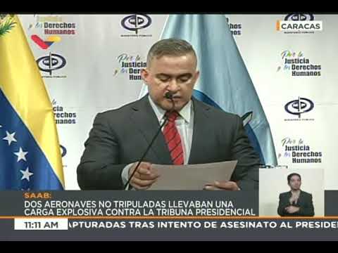 El Fiscal General de la República, Tarek William Saab, indicó en rueda de prensa este lunes que han sido identificados los autores materiales y colaboradores inmediatos del intento de magnicidio contra el presidente de la República Nicolás Maduro, hecho ocurrido el pasado sábado 4 de agosto. Se determinó la identidad de los explosivistas, el lugar dónde se alojaron y las primeras conexiones internacionales de los involucrados. También fueron detenidos en flagrancia dos personas encargadas de maniobrar uno de los drones desde un vehículo.
