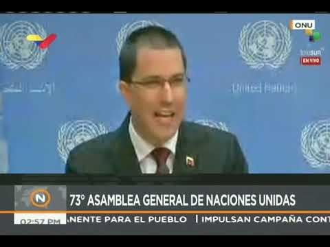 El canciller venezolano, Jorge Arreaza, aseguró este martes que las agresiones de las que fue víctima Venezuela y su presidente, Nicolás Maduro Moros, durante la primera jornada de debates de la septuagésima tercera sesión de la Asamblea General de la Organización de las Naciones Unidas (ONU) “equivalen a tres años de agresiones contra cualquier país que sea adversario de los Estados Unidos”. Respondió a las palabras contra Venezuela del presidente estadounidense, Donald Trump, tanto en su discurso ante la ONU como en declaraciones ante la prensa.