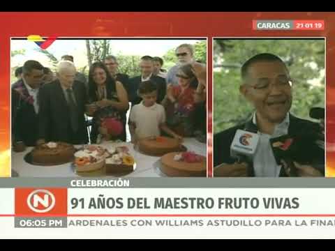 Con un encuentro entre cultores y militantes ecosocialistas realizado en Puente Independencia, Caracas, se rindió honores al reconocido arquitecto Fruto Vivas quien cumplió este lunes 91 años. “Celebramos el milagro en que esta tierra haya crecido unos árboles irrepetibles, inigualables, únicos, como por ejemplo Fruto Vivas y como él otros venezolanos de los que nos sentimos orgullosos”, expresó el ministro de Cultura, Ernesto Villegas, quien organizó la actividad.