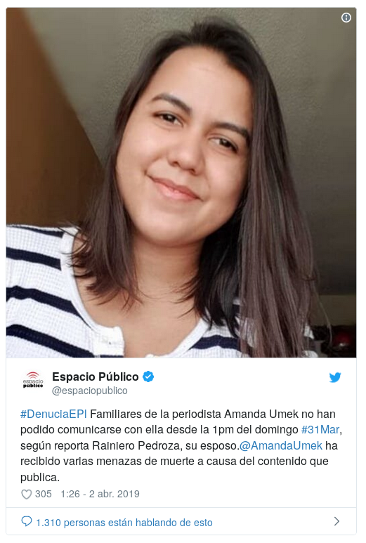 En el transcurso del pasado 1 de abril se hizo viral en redes sociales la denuncia de la supuesta desaparición forzada de la periodista venezolana, Amanda Umek.