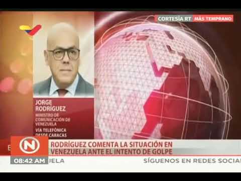 El Vicepresidente de Comunicación, Cultura y Turismo de Venezuela, Jorge Rodríguez, informa vía Twitter que en estos momentos el Gobierno Bolivariano está enfrentando y desactivando “a un reducido grupo de efectivos militares traidores que se posicionaron en el Distribuidor Altamira para promover un Golpe de Estado contra la Constitución y la paz de la República”, luego de que el diputado opositor Juan Guaidó emitiera mensajes en redes sociales convocando a sus seguidores a lo que él denomina “la fase final de la Operación Libertad”. El ministro de Defensa, Vladimir Padrino, informa que “la FANB se mantiene firme en defensa de la Constitución Nacional y sus autoridades legítimas” y que todas las unidades militares desplegadas en las ocho Regiones de Defensa Integral reportan normalidad en sus cuarteles y bases militares.