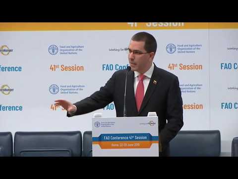 El canciller venezolano, Jorge Arreaza, ratificó ante la Organización de las Naciones Unidas para la Alimentación y la Agricultura (FAO, por sus siglas en inglés) el compromiso de Venezuela con el desarrollo y el cumplimiento de la Agenda 2030, como parte del Plan de la Patria 2019-2025. “El compromiso de la República Bolivariana de Venezuela con los Objetivos del Milenio, que fueron cumplidos en el ámbito de la alimentación y nutrición antes de 2015 y ahora el desarrollo sostenido con la agenda 2030 es absoluto”, expresó este lunes durante su intervención en el Segmento de Alto Nivel del 41º período de sesiones de la Conferencia de la FAO, que se realiza en Roma, Italia.