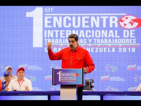 El Presidente venezolano, Nicolás Maduro, enfatizó este viernes que el 2019 se ha convertido en un año de asedio y agresión contra la nación suramericana, a través del bloqueo económico, comercial y financiero impuesto por el gobierno de Estados Unidos (EEUU). Sin embargo, resaltó la lucha del pueblo venezolano ante las agresiones de EEUU que, a través del bloqueo y medidas coercitivas, ha buscado generar caos y zozobra en la sociedad. “Acá estamos de pie, dignos, victoriosos y en marcha hacia al futuro de una patria indetenible. Estamos de pie, dignos y victoriosos”, recalcó el mandatario venezolano desde el Hotel Alba Caracas, donde se lleva a cabo el I Encuentro Internacional de Trabajadores y Trabajadoras.