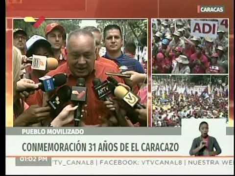 Durante la movilización del pueblo venezolano en conmemoración del Caracazo, el primer vicepresidente del Partido Socialista Unidos de Venezuela (PSUV), Diosdado Cabello, manifestó que se rinde honores a la rebeldía popular de hace 31 años que se expresó en las calles debido a que era una manifestación en contra de las medidas adoptadas por el gobierno del puntofijismo, fecha en que hubo personas desaparecidas y más de tres mil muertos.