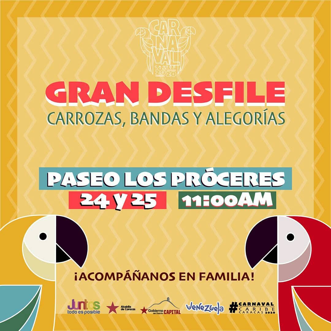 Este lunes de carnaval se realizó en el Paseo Los Próceres, en la ciudad de Caracas, el primero de dos días de desfiles de carrozas, bandas y alegorías, como parte de las fiestas recreacionales y culturales conocidas como “Carnavales Felices 2020”, organizadas por varias instituciones del gobierno bolivariano.