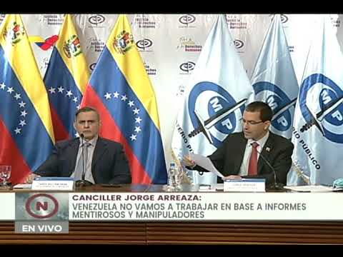 El canciller venezolano, Jorge Arreaza, y el Fiscal General del país, Tarek William Saab, realizaron este sábado una rueda de prensa conjunta para salir al paso al Informe sobre los Derechos Humanos en Venezuela, presentado recientemente por una la «Misión Internacional Independiente de Determinación de los Hechos» amparada por las Naciones Unidas, la cual “sólo busca manchar el proceso electoral del próximo 6 de diciembre, dañar los procesos de diálogo político a lo interno y socavar el trabajo que viene realizando nuestro país con la alta comisionada Michelle Bachelet”, señaló el canciller. El Fiscal General de la República, Tarek William Saab, detalló este sábado las acciones del Ministerio Público, en nombre del Estado venezolano, para defender los derechos humanos.