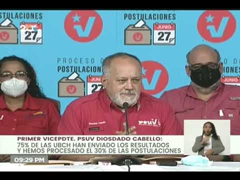 Cabello señaló que con un poco más del 30 % de información procesada (pasada las 10 de la noche) se alcanzó los 27 mil 602 postulados a candidatos a los distintos cargos que salen de la bases del partido.