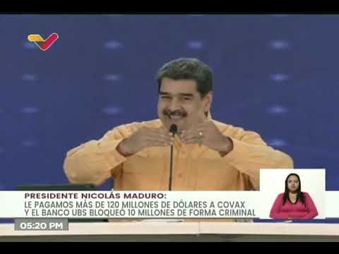 “En los últimos depósitos -para llegar ya al depósito completo- hemos depositado más de 100 millones de dólares, pero el sistema COVAX nos anunció que los últimos 10 millones habían sido bloqueados por el gobierno de Estados Unidos”, explicó el Presidente venezolano. Son “diez millones para comprar vacunas contra el coronavirus para el pueblo de Venezuela. ¿Cómo se llama eso? Sanciones criminales de los Estados Unidos contra Venezuela”, explicó durante la conmemoración del 4° aniversario del Movimiento Somos Venezuela.